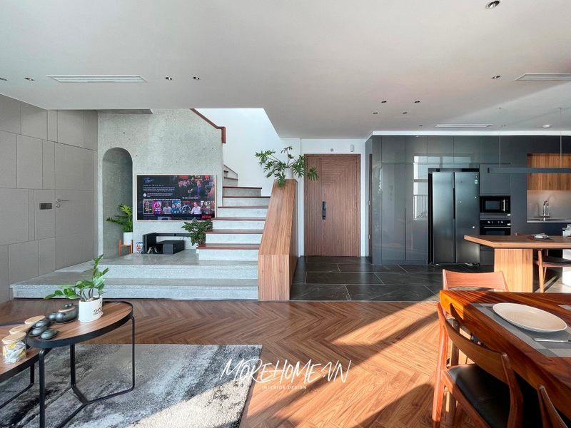 Thiết kế không gian mở đang trở thành xu hướng ngày càng phổ biến trong lĩnh vực nội thất. Bằng cách loại bỏ những bức tường ngăn cách, không gian sống trở nên rộng rãi và thoáng đãng hơn, cho phép ánh sáng tự nhiên len lỏi vào từng góc phần. Một lợi ích nổi bật của thiết kế này là khả năng tạo ra sự kết nối mật thiết giữa các khu vực chức năng như phòng khách, bếp và bàn ăn. Hình ảnh một gia đình quây quần bên nhau trong một không gian thân thiện và ấm cúng sẽ khiến bạn cảm thấy hạnh phúc và gắn bó hơn.